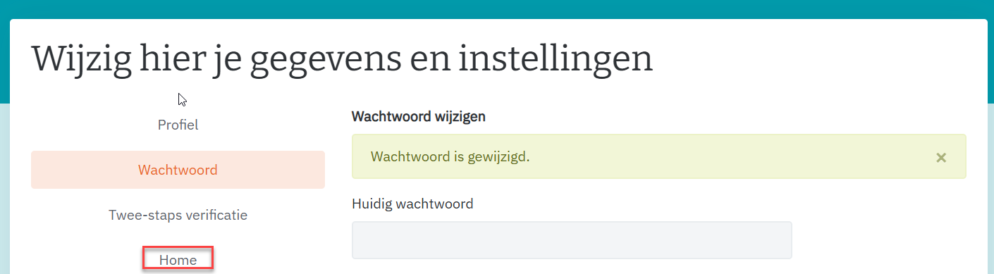 Via de knop 'Home' verlaat je het 'Profiel' en keer je terug naar de applicatie.