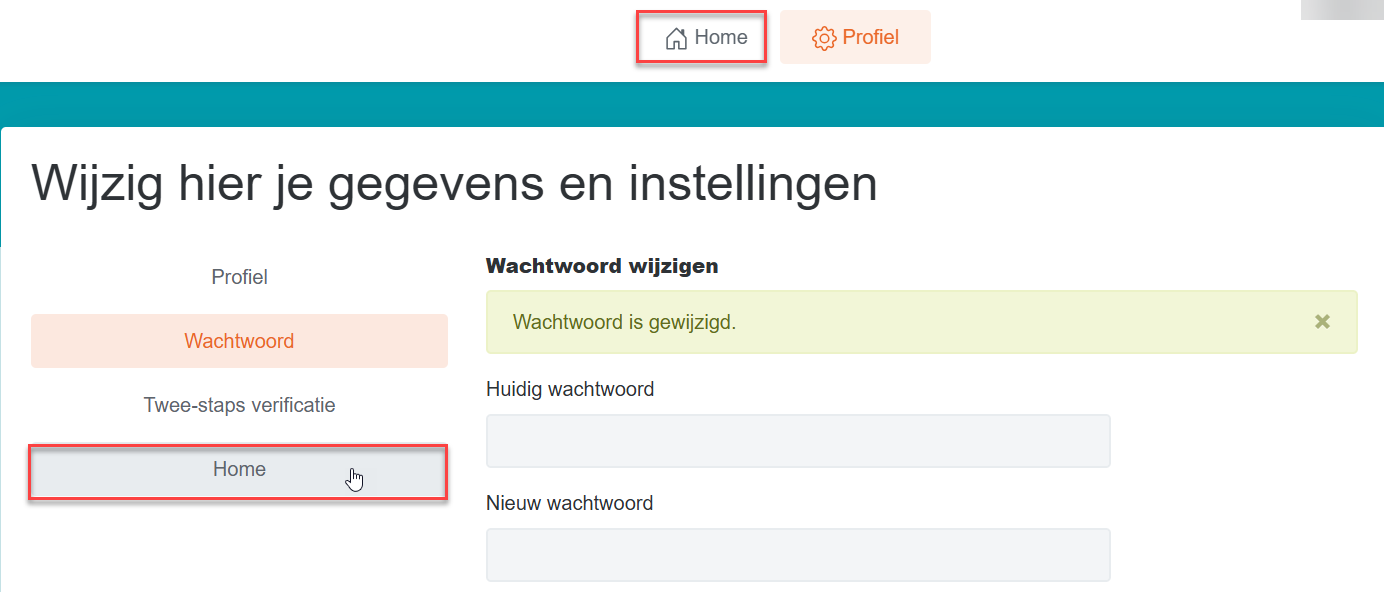 Via de knop 'Home' verlaat je het 'Profiel' en keer je terug naar de applicatie.
