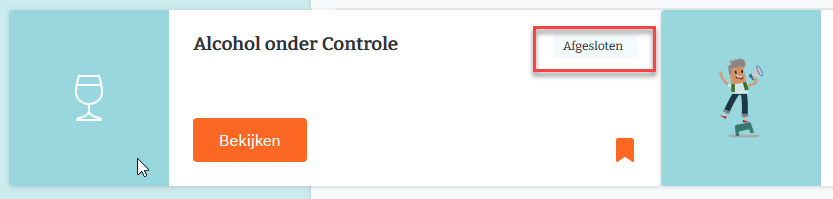 Zodra jouw behandeltraject wordt beëindigd, worden al je modules afgesloten. Dit is herkenbaar aan het label 'Afgesloten' rechtsboven op de moduletegel:
