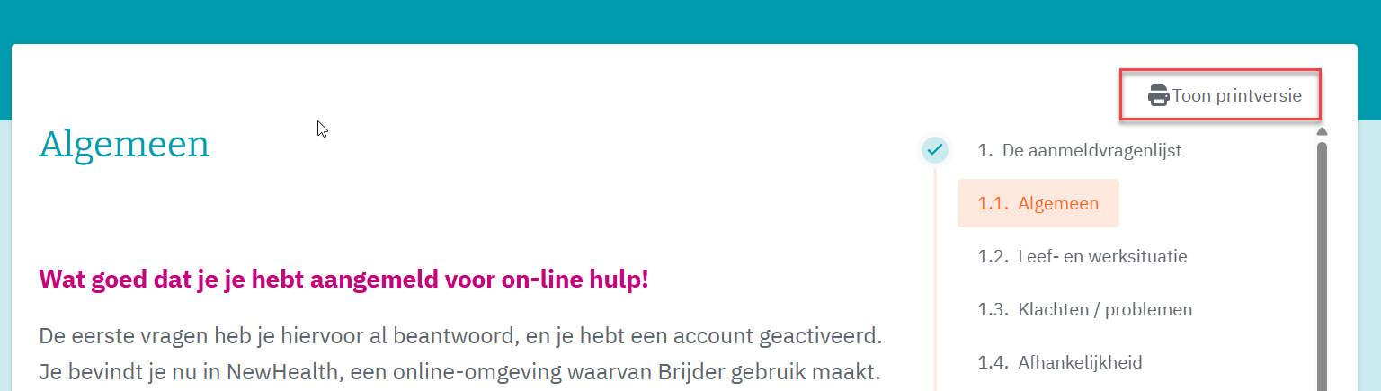 Klik op 'Toon printversie' rechtsboven in de module: