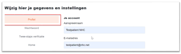 Een nieuw tabblad opent zich, waarin altijd het tabblad 'Profiel' is geselecteerd:
