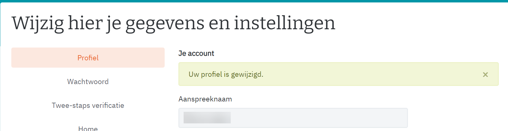 De groene melding bevestigt het opslaan van je Aanspreeknaam.