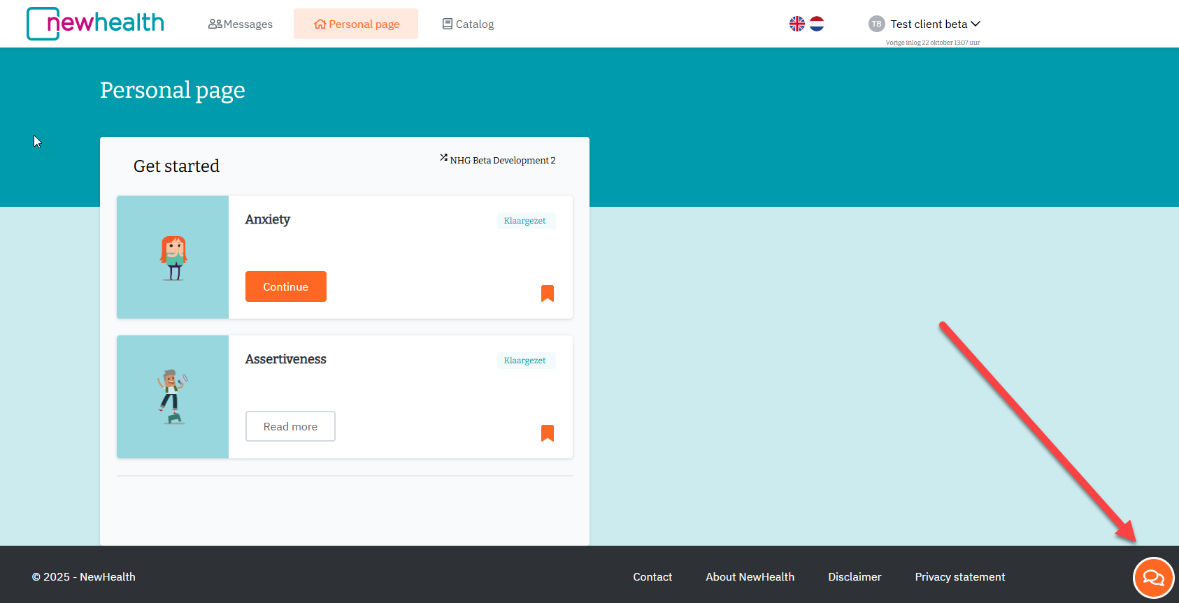 - For practical questions about how the platform works, please contact our support department. You can send an email to support@newhealth.nl or call 085-489 8999 directly.