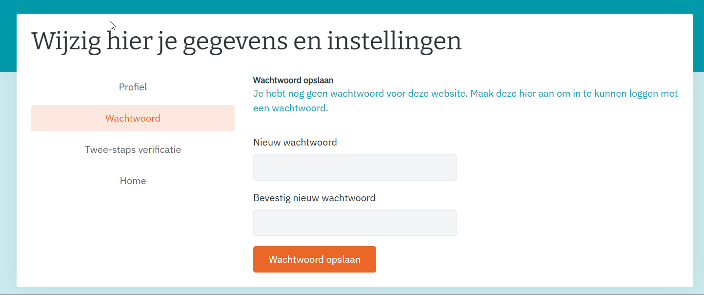 Enter the same password twice. Then click on 'Wachtwoord opslaan' (= save).