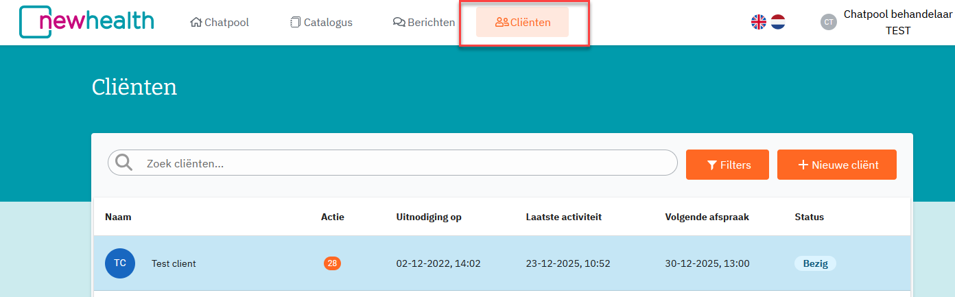 Klik in de bovenbalk op ‘Cliënten’ om de detailpagina van de cliënt te kunnen bezoeken: