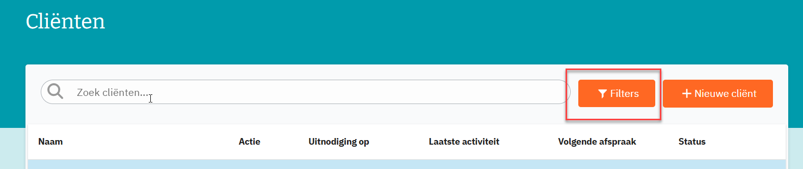 Het cliëntenoverzicht kent een aantal filters die het zoeken van een cliënt of groepen van cliënten vergemakkelijken.